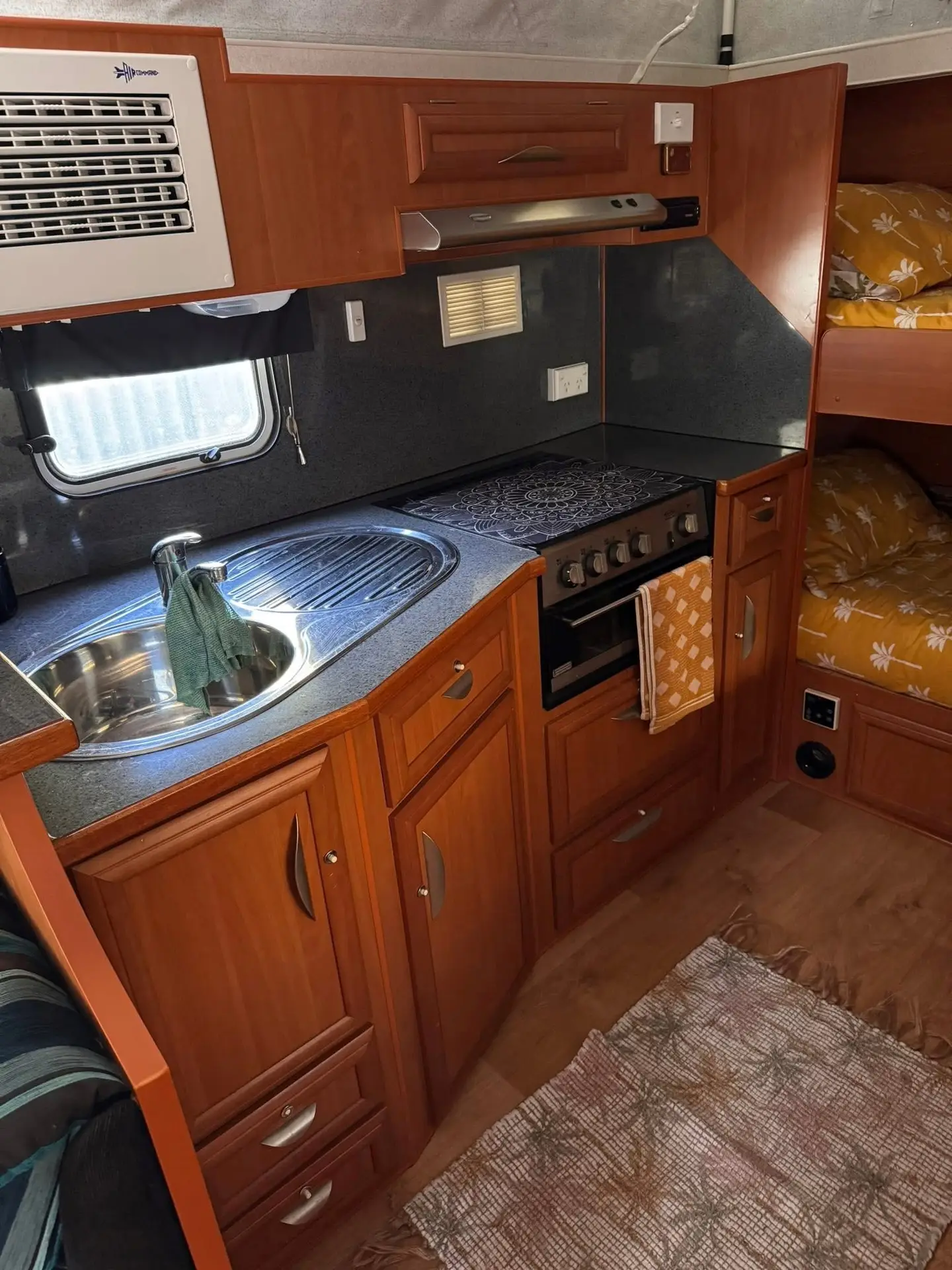 • Double bunks at rear of van – comfortably fits an adult