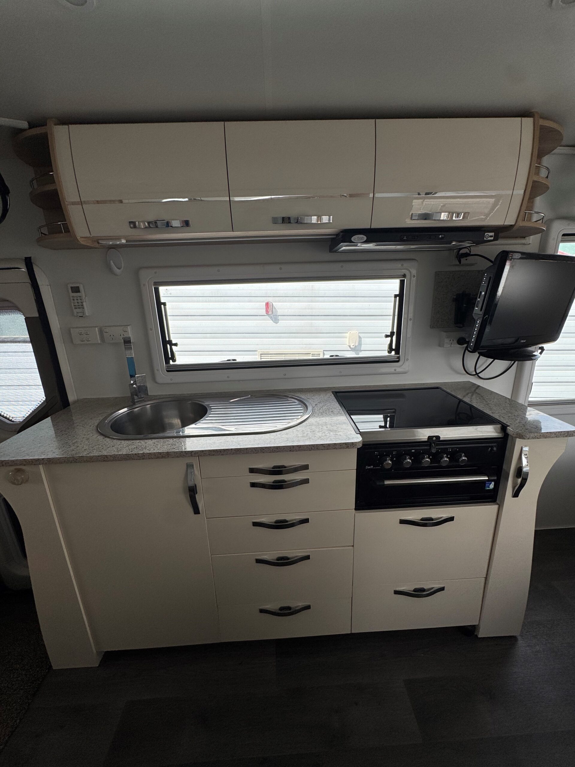 Year: 2019 Type: Used Colour: White Rego: S319TLF ATM:2255 Features: DO – 35 Hitch Alko Enduro Suspension 2000W Solar Inverter Rear Camera Roll out Awning External TV Point Reverse Cycle Air conditioner Deisel Heater Cook Top & Grill Double Bed Booth Seating Dining area Separate Shower, Toilet & Much More Come have a look on site at this caravan!